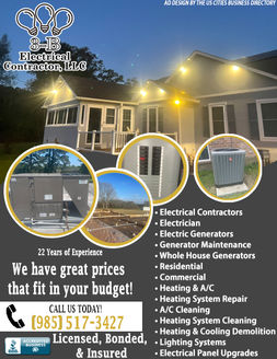 3-B Electrical Contractor, LLC is a licensed, bonded, and insured company based in Holden, LA, with 22 years of experience. Serving both residential and commercial clients, they specialize in electrical services, including panel upgrades, lighting systems, and generator installation and maintenance. Their expertise also covers heating and cooling solutions such as system repair, cleaning, and demolition. For more information or to schedule a service, call (985) 517-3427.