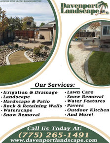Our knowledgeable and highly trained staff takes pride on every job and strives to exceed expectations for every customer. Our goal is to maintain healthy and vibrant lawns for homes and businesses throughout Western Nevada and Eastern California. We offer comprehensive lawncare services including mowing, fertilizing, weed control, aeration, dethatching, irrigation, landscaping and more for large and small properties; specializing in pavers, outdoor kitchens, water features. During the winter months, we provide reliable snow and ice removal for residential and commercial properties.