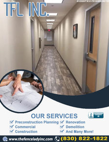 TFL Inc, also known as The Fence Lady, is a commercial general construction company. We are designed to specialize in the area of remodel, rehabilitation, renovation, repair and maintenance of state, local, municipal and higher education facilities throughout the State of Texas. Over the last 16 years TFL Inc. has grown and succeeded through mentor programs, reputation, and quality into a company that builds lasting relationships with its customers.